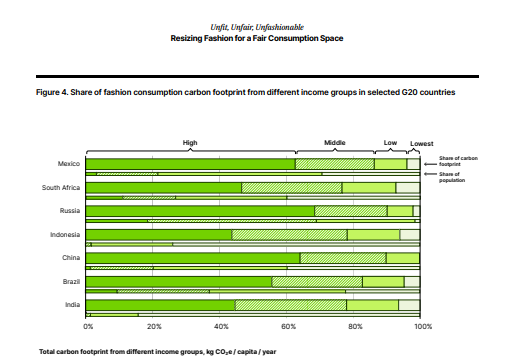 Nous voyons que au Mexique quelques pourcents de la population (les « high income ») représentent 60% de l’impact. Plus on est riche plus on consomme donc de mode.