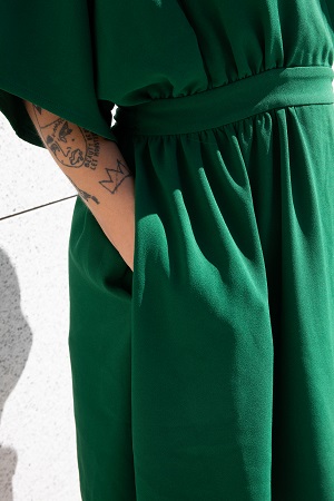 La Sikara Verte Mini est une robe verte 100% crêpe de satin upcyclée à partir de fins de rouleaux de chez LVMH. Son décolletée en V et sa coupe en portefeuille lui apporte classe et distinction, tout en étant d’une grande fluidité . Elle est idéale pour une soirée décontractée ou un événement en plein air.