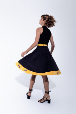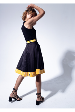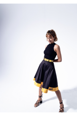 Le bas de la jupe est évasé.