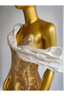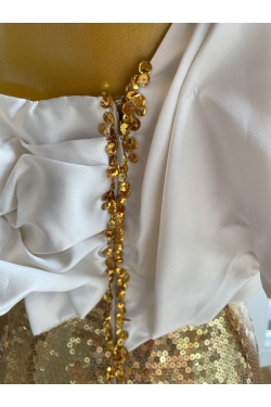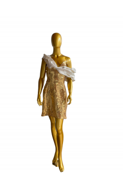 Sans bretelle au niveau de l'épaule gauche, colerette tour de bras