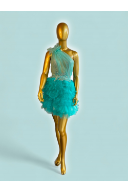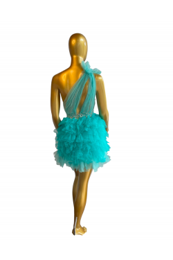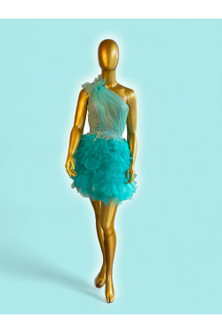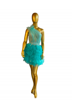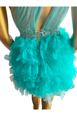 Robe bleue/vert de princesse Jennifer Cashera, en location, robe de cocktail, robe de soirée