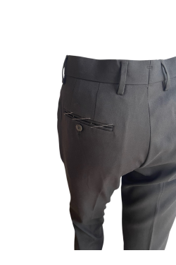 Fils blancs sur les 2 poches arrières passepoilées avec bouton