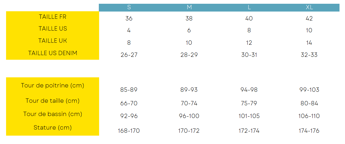 Informations guide des tailles retrouvées sur le